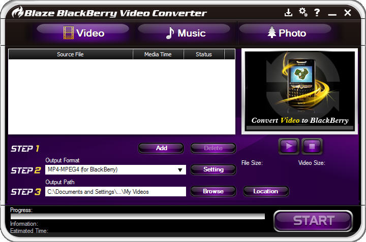 Click , you will launch BlazeVideo BlackBerry Video Converter and enter its main interface.
