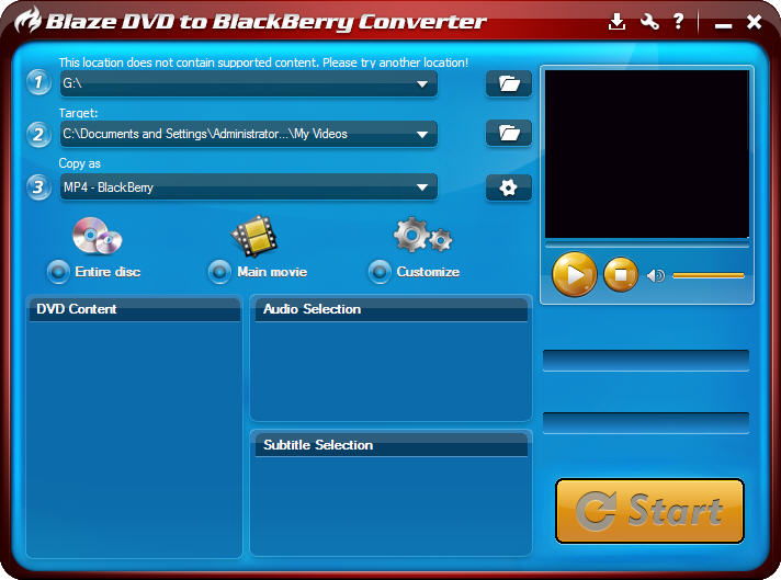 Click , you will launch BlazeVideo DVD to BlackBerry Converter and enter its main interface.