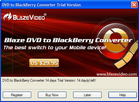 1. Launch BlazeVideo DVD to BlackBerry Converter to show the register dialog box.