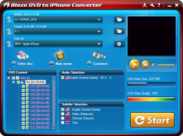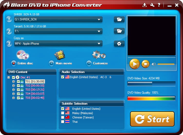 BlazeVideo DVD to iPhone Converter will intelligently recognize and select main movie title only to convert.