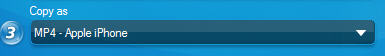 Select Output Type: default is "MP4 - Apple iPhone " in "Copy as"