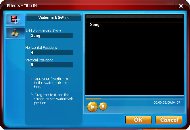 Effects: Crop vide size and add watermark for your video.