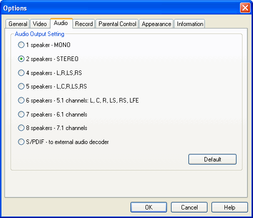 This   option is used to configure the audio output mode for   BlazeDVD Free. Please select   the correct one from the following according   to the actual configuration of your   PC.