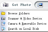 Import PhotosYou can get photos from hard disk folder, Scanner&Video Device, Camera& Removable Device, you can also freely search for your desired photos on local disk.