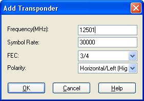 Frequency of each Transponder is relative fixed. You can access each Transponder information on the relative satellite operator's website. There are some satellites' transponder in BlazeVideo HDTV Player, but the validity and integrality may be uncertain. Below is the Transponder setting box: