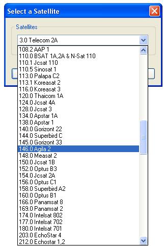 "Add" button in the scan dialog box, below dialog box will popup for you to choose satellite. Please select your desired satellite according to antenna's orientation, then click