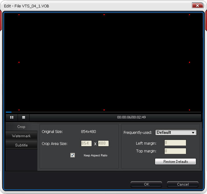 Crop: BlazeVideo iPod Video Converter supports to crop your movie with your wanted video size and convert them for iPod.
